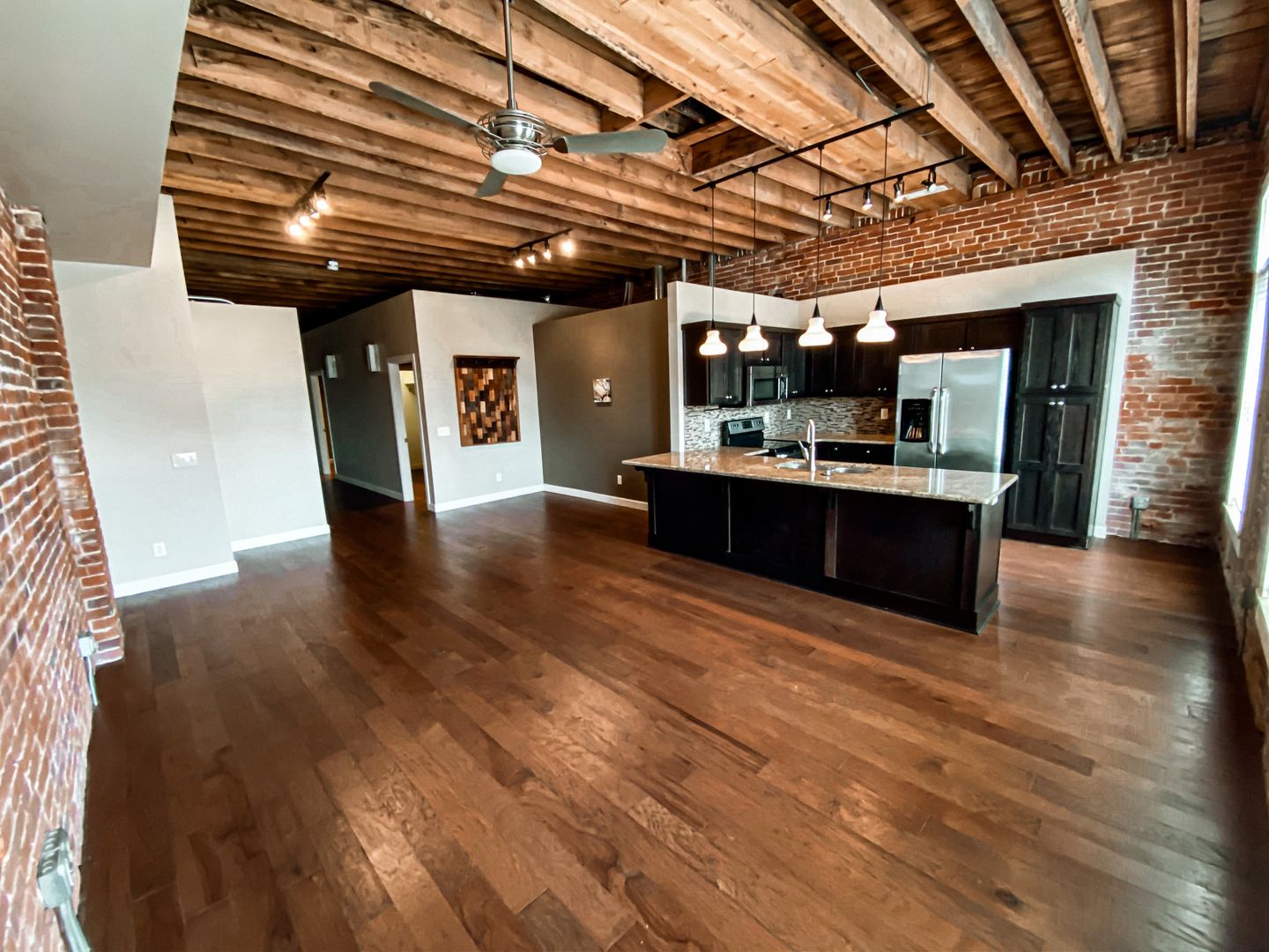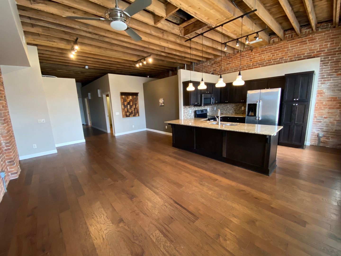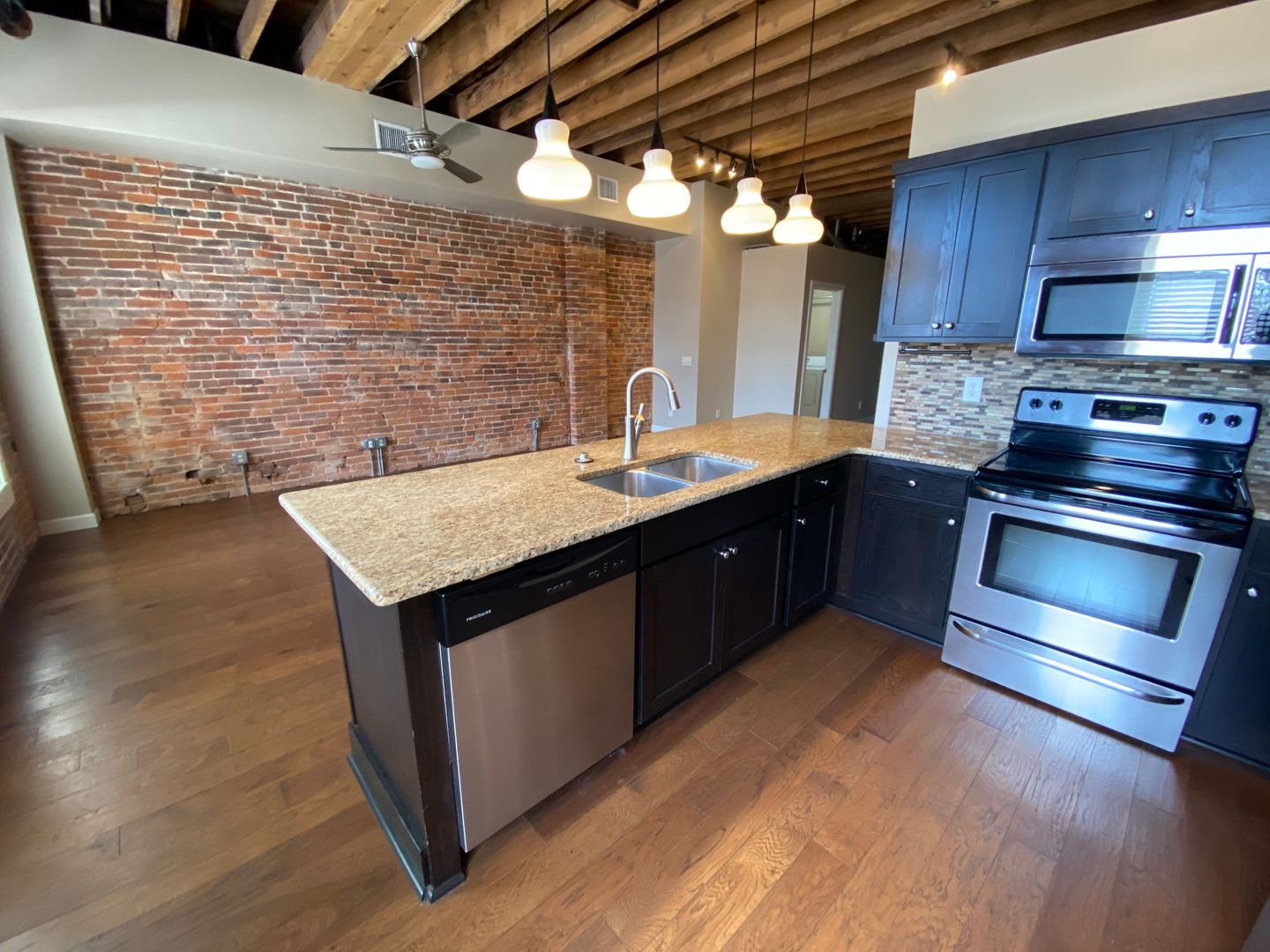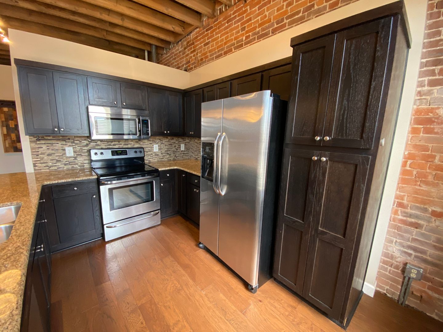 Stainless appliances including fridge, stove, microwave and dishwasher
