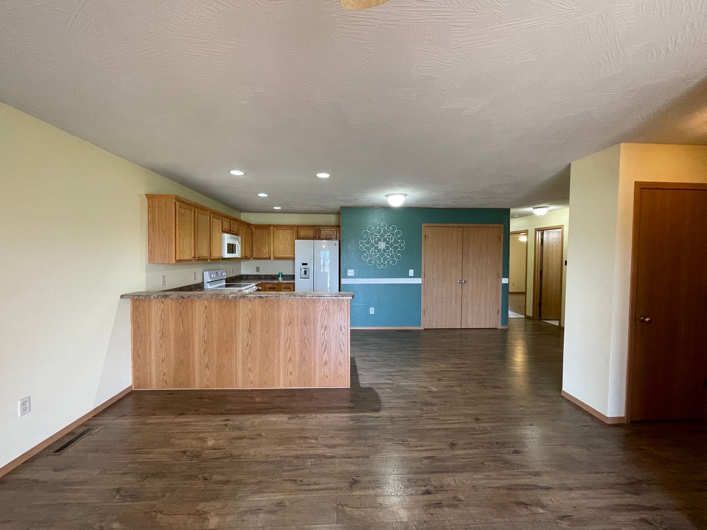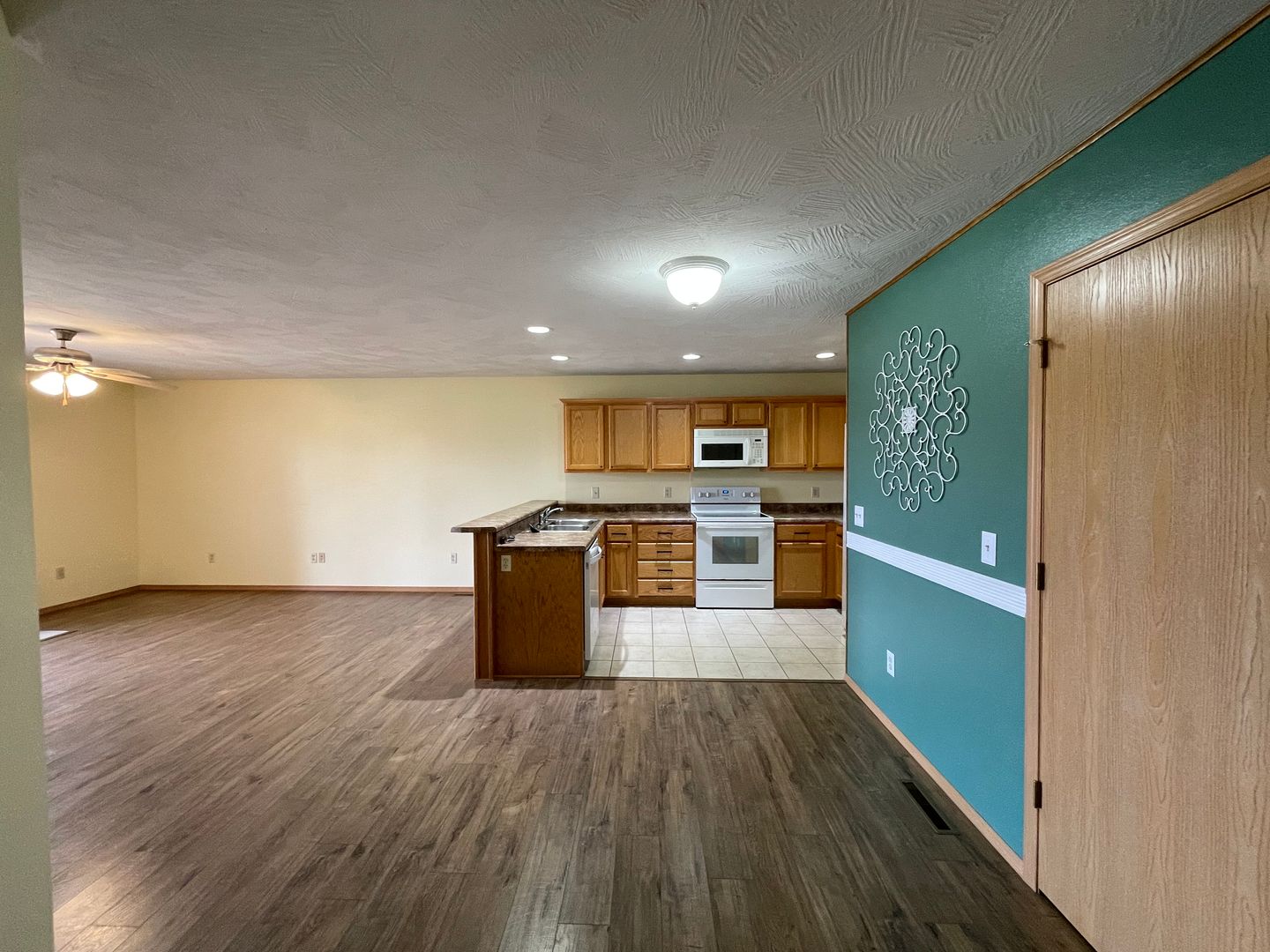 Fridge, stove, dishwasher, and microwave provided