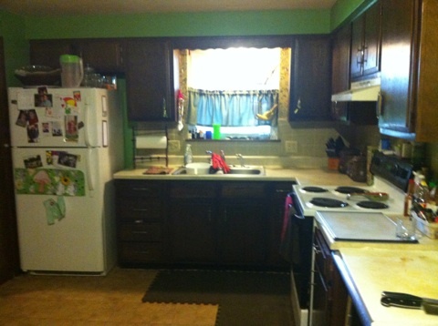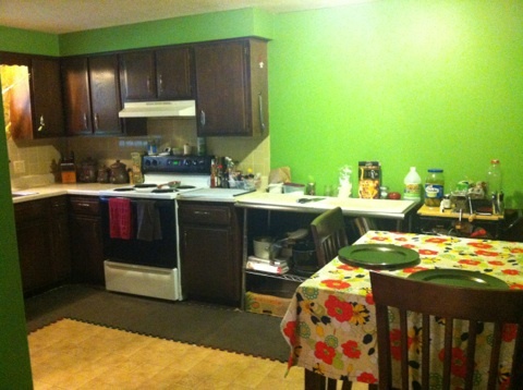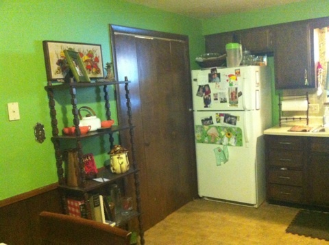 Kitchen equipped with fridge and stove