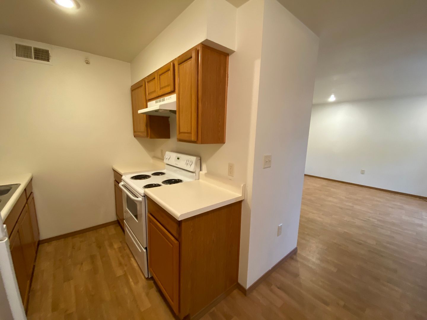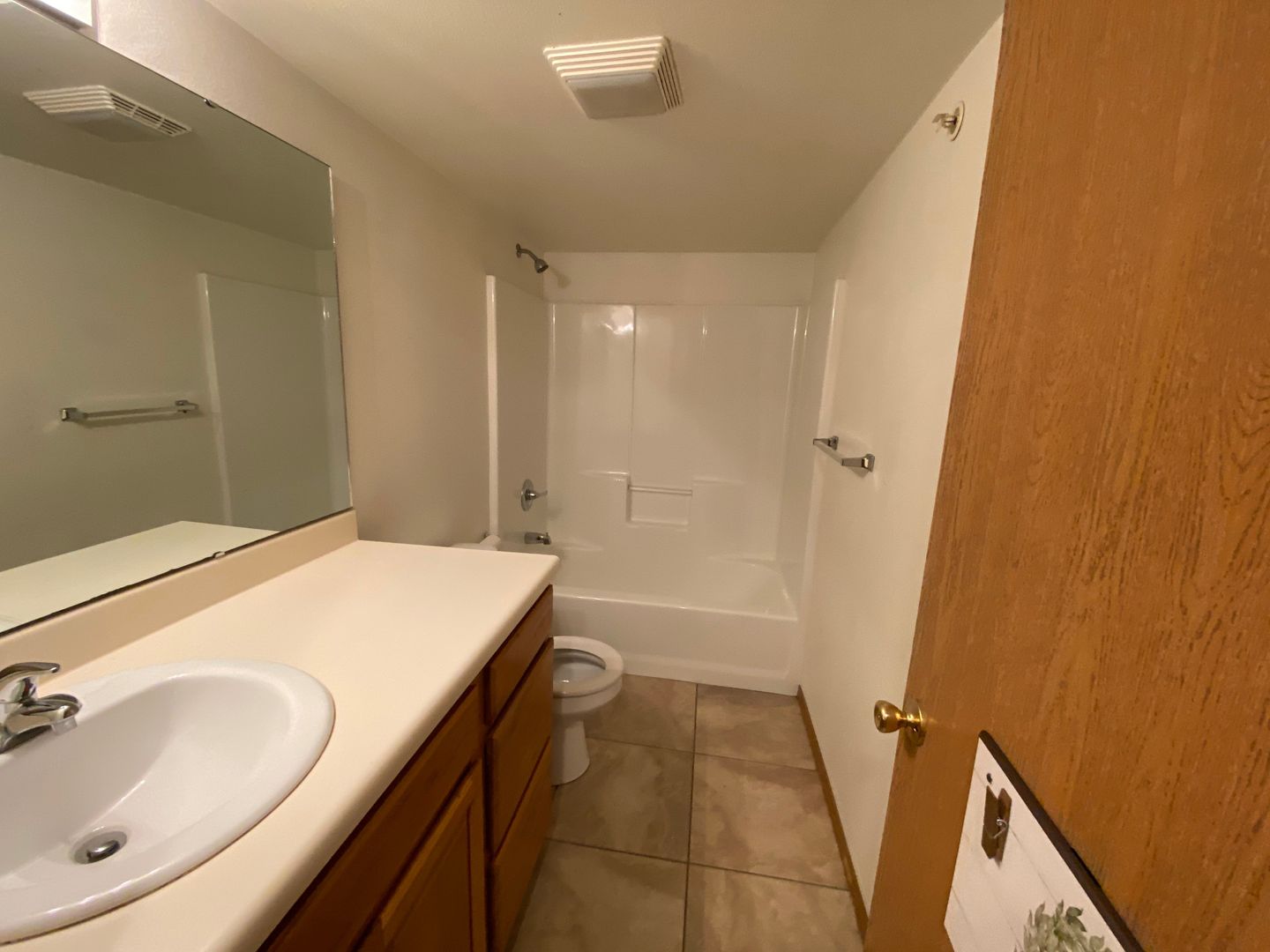 Vinyl plank hardwood floors in common areas, carpet in bedrooms