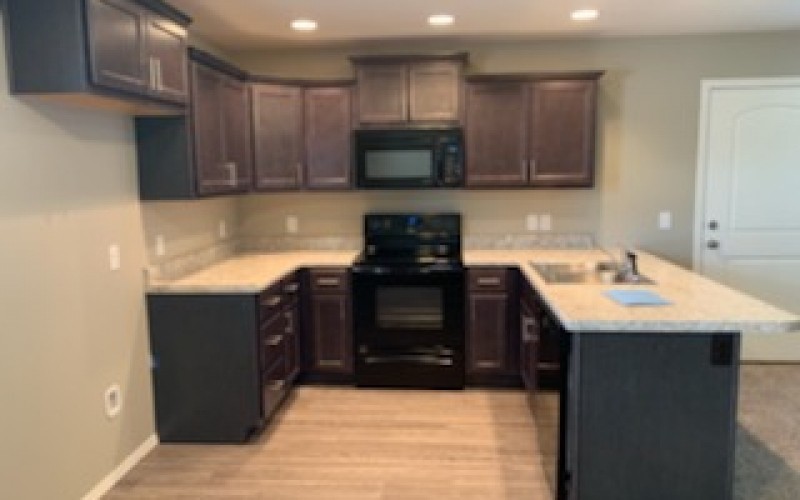 Black appliances including microwave, dishwasher, and stove (no fridge)