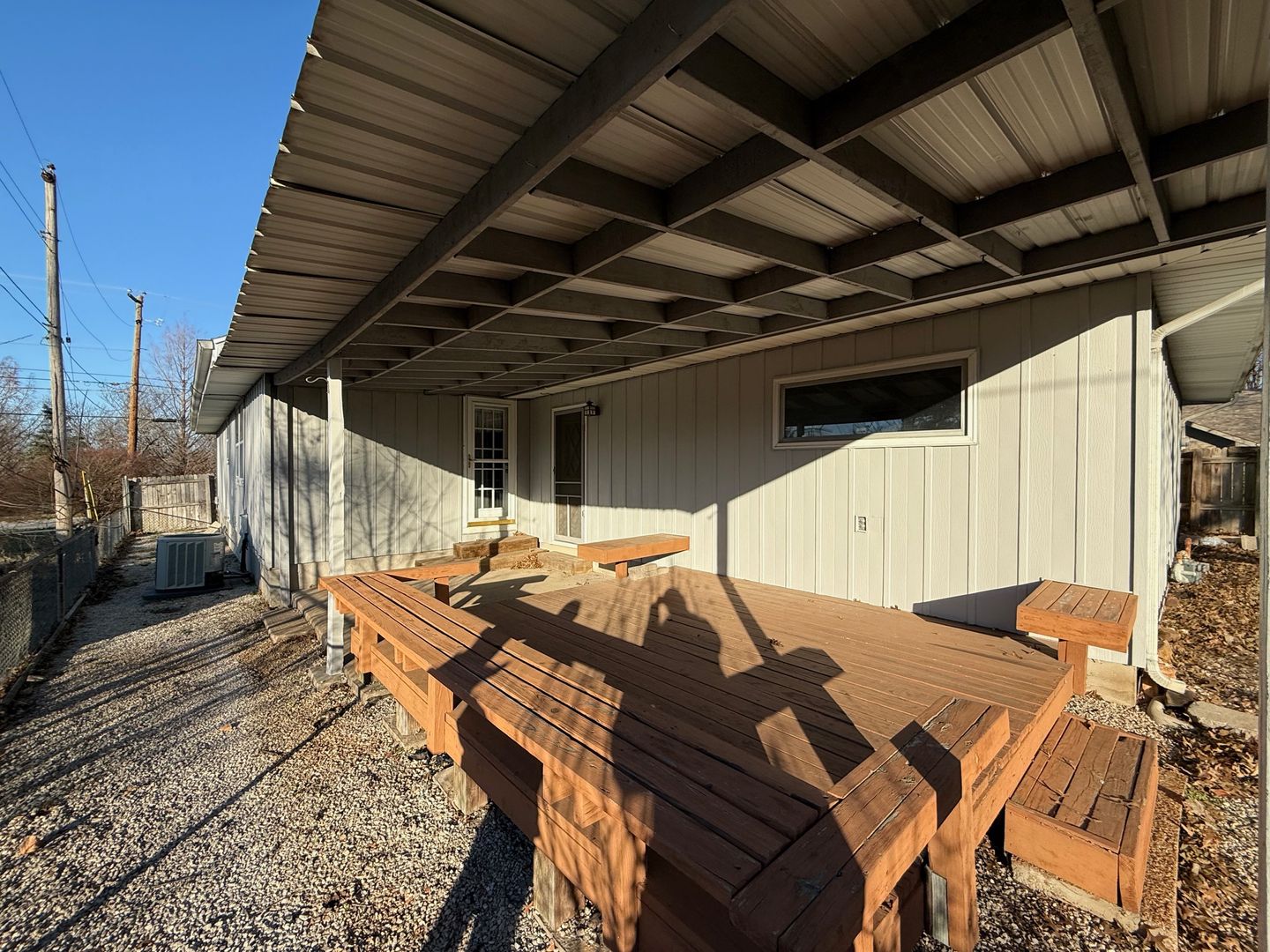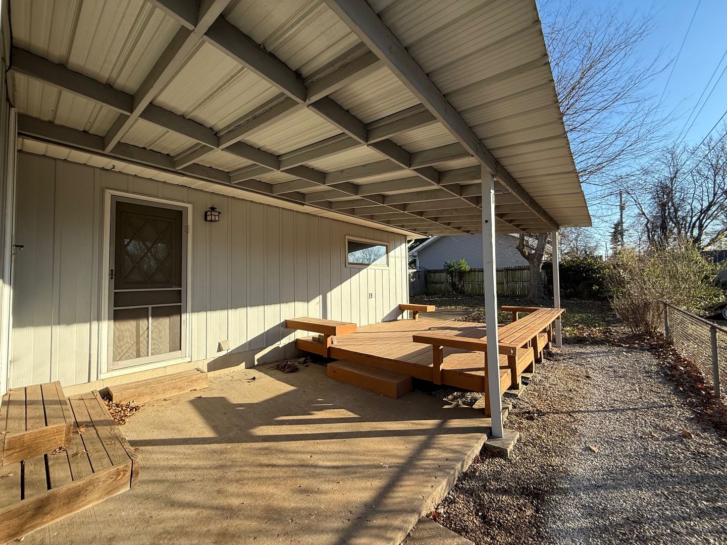Covered patio with built in seating