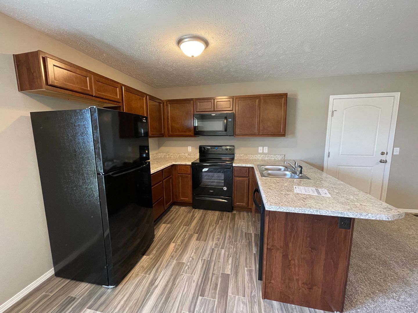 Kitchen equipped with refrigerator, stove, microwave and dishwasher