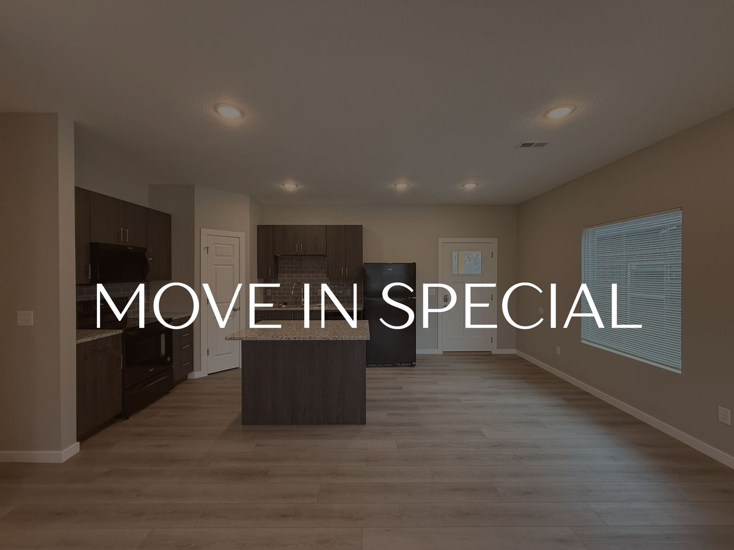 MOVE IN SPECIAL: CHOOSE BETWEEN 1. NO RENT DUE UNTIL 2026 WITH 18 MONTH LEASE OR 2. PRIVACY FENCED YARD