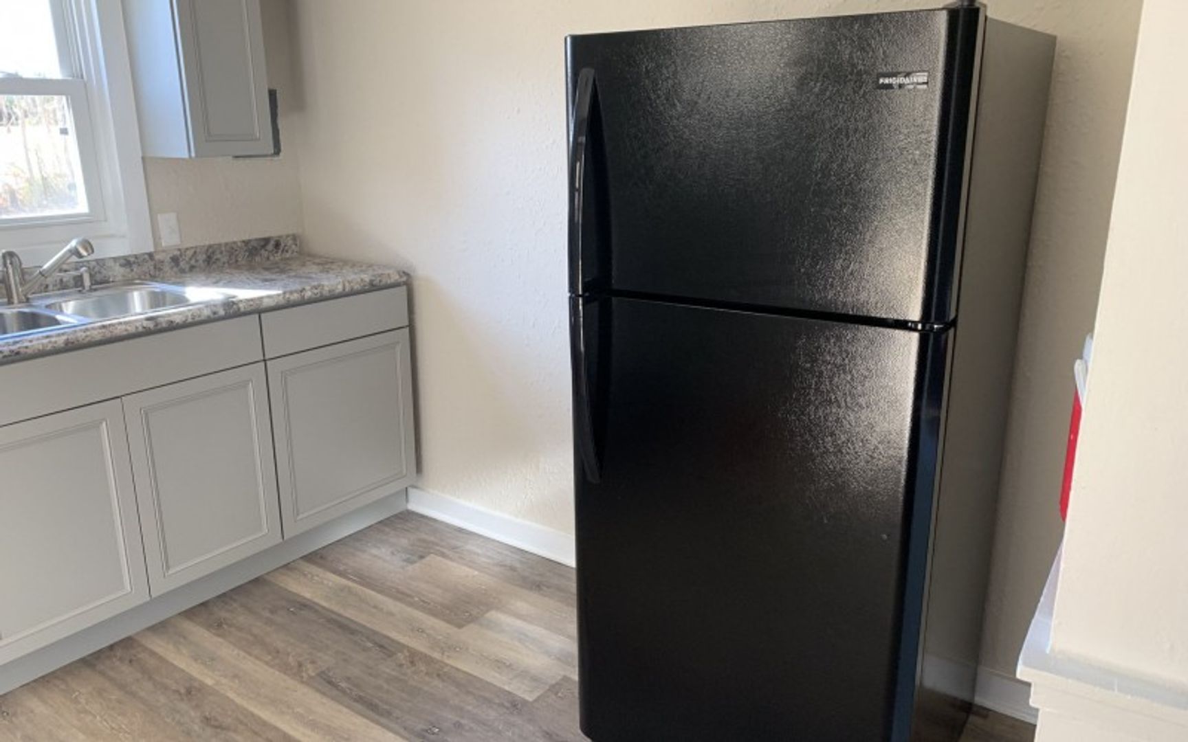 Newer cabinets, stove, and fridge